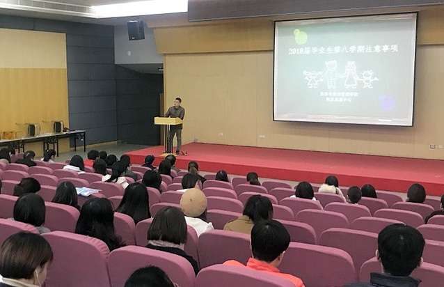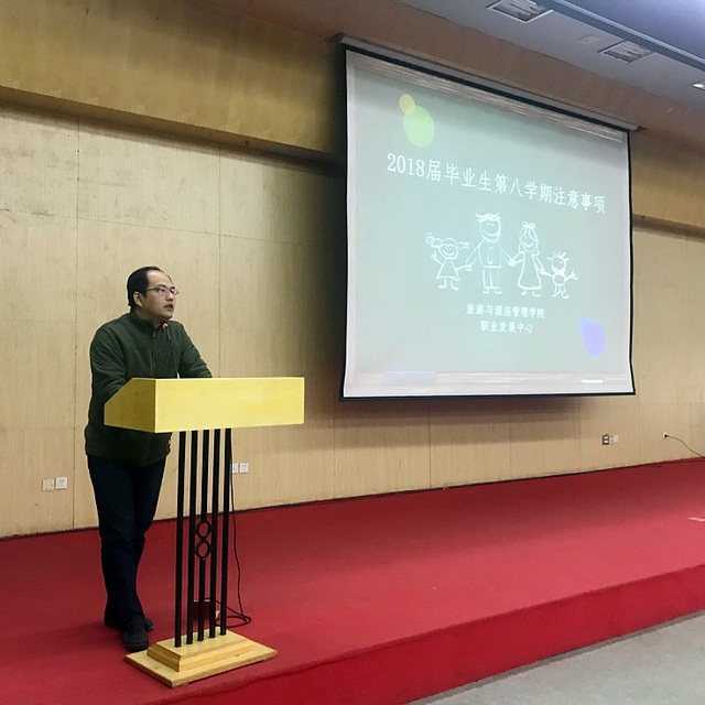 (通讯员:陈瑶、齐振英)2017年12月27日上午十点,老员工活动中心二号报告厅举行旅游学院2018届全体毕业生集中大会。旅游学院副经理谭志国、党委副书记孔军、毕业班班主任、全体辅导员、2018届全体毕业生参加大会,会议由就业工作专职人员陈瑶主持。