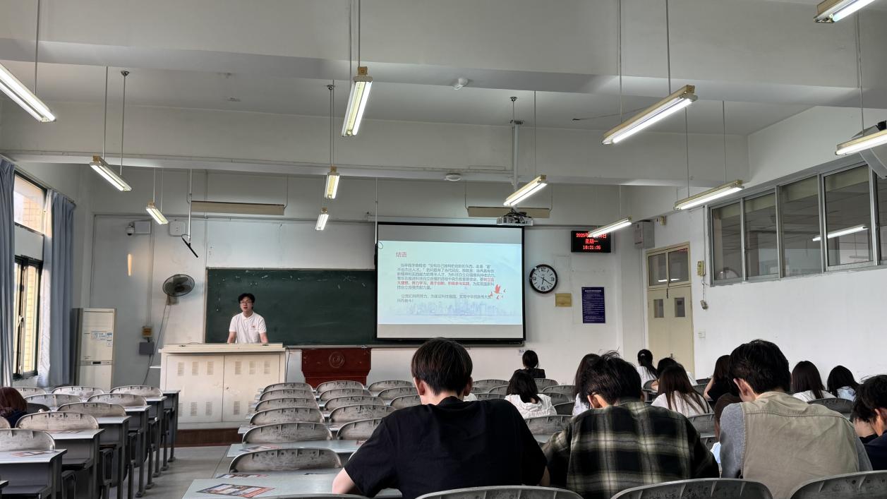 本网讯(通讯员:叶海昊 周博 审核:孙浩)5月5日晚,“经叹号”宣讲队成员走进旅游学院2441、2442班晚讲评现场,以“科技强国:新时代科技创新和实现路径”为主题开展专题宣讲,为同学们带来一场思想与知识的盛宴。