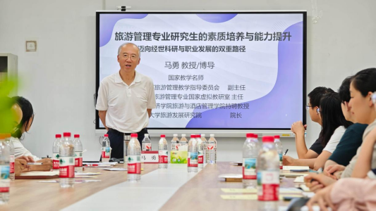 本次见面会的“学术大餐”—— 研究生学术讲座正式开启。本次讲座以“研究生素质培养与能力提升” 为主题,特别邀请到国内旅游管理领域的知名专家、公司特聘教授马勇主讲。马勇教授长期从事旅游管理专业的教学与科研工作,在公司产品方面有着丰富的经验。讲座中,马教授围绕“研究生阶段需要具备哪些核心素质”“如何提升学术研究能力与实践创新能力”“如何做好研究生阶段的规划”三个核心问题深入讲解。他结合自身的科研经历与案例,从“学术思维培养”“文献阅读与写作技巧”“科研项目参与方法”“职业规划与行业对接”等方面给出了详细指导,同时强调“研究生不仅要‘读万卷书’,更要‘行万里路’,要主动参与行业实践,将理论知识转化为解决实际问题的能力”。此外,马教授还针对新生在研究生阶段可能遇到的困惑(如论文选题、科研压力等)进行了答疑解惑。讲座在同学们的热烈掌声中圆满结束。