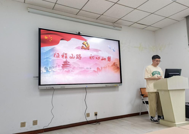 交流分享会上,陈立鑫讲解了习近平总书记在陕西省榆林市绥德县考察调研时的照片,结合旅游管理专业,介绍了“文旅融合”在乡村振兴过程发挥的积极作用,分享了自己的入党初心——深入基层,奉献自己。他谈到,以习近平同志为核心的党中央,始终坚持为人民谋幸福、为民族谋复兴的初心使命,无论山路多么崎岖、面临如何困难,始终用实际行动践行“全心全意为人民服务”的宗旨,将考察、调研做到细致入微,关心广大人民的生活。作为一名党员应胸怀“国之大者”,担当使命任务,将小我融入到党的事业、国家发展当中,与时代同呼吸、共命运。因此在面对众多工作选择时,他选择了“西部计划”,前往新疆维吾尔自治区,奉献自己的青春力量。每一位青年党员都是生机勃勃的星火,相信千千万万青年党员汇聚在一起,形成磅礴之力,一定能燃起祖国发展的红火。